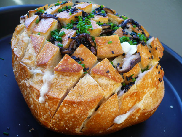 Vídeo, com uma receita bem legal de pão recheado com cogumelos e