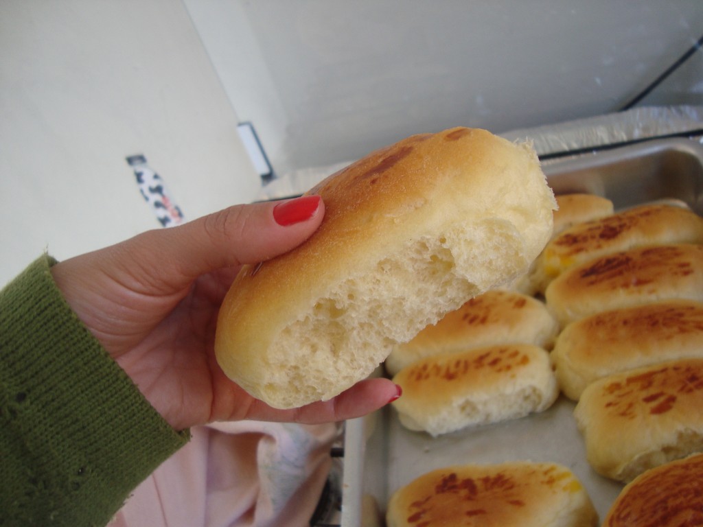 - Unte algumas assadeiras com óleo, enrole os pãezinhos na mão mesmo, deixar espaço entre um pão e outro de uns 2 centímetros