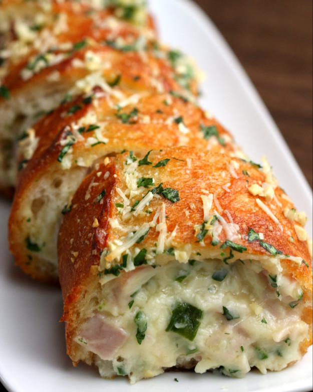 Olá pessoal, olha só essa receita de Pão De Alho Com Presunto E Queijo!