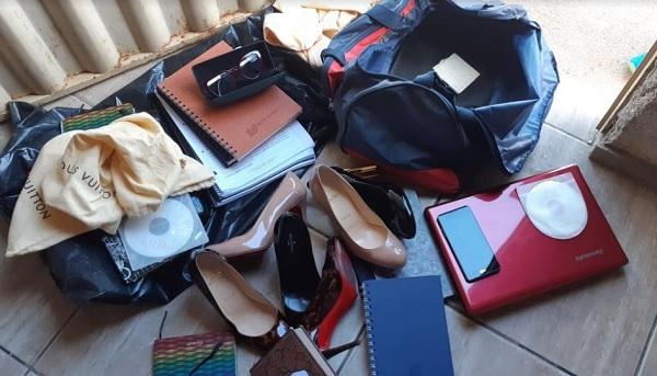 O Gaeco já encontrou, durante escavações em julho de 2019, vários itens de grife (abaixo) numa propriedade de Maria Laura Caldas no assentamento Nego Fuba (Santa Terezinha). Ela confirmou que foram adquiridos com o dinheiro desviado pela organização criminosa. Seria, na verdade, o dinheiro da comissão e da sobra das propinas entregues aos chefões da orcrim. (mais em http://bit.ly/2NWFpio)