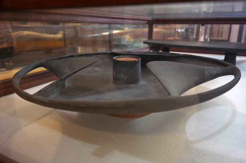 No primeiro andar do Museu Egípcio do Cairo, numa pequena sala de número 33, próxima a grande Sala das Múmias, não se pode deixar de ficar surpreso ao ver uma pequena redoma de vidro, embora não sem alguma dificuldade devido aos reflexos da luz sobre o vidro que o cobre, um objeto solitário semelhante a uma roda ou disco de pedra.