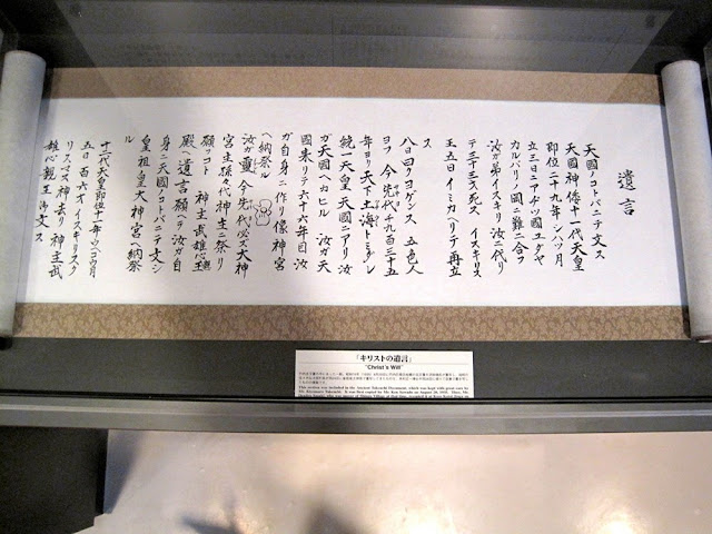 Ao lado da sepultura em Shingo, existe um museu chamado Legend of Christ Museum, onde há três volumes que seriam a transcrição dos documentos originais. O estranho destes documentos, é que ele também registram a história de Atlântida e às origens extraterrestre da raça humana.