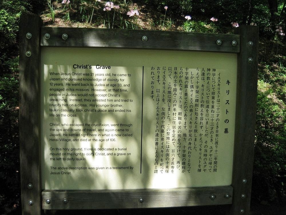 Mas a história não acaba por aí. Segundo um documento, Jesus Cristo visitou o Japão pela primeira vez, quando tinha a idade de 21 anos para estudar teologia, língua japonesa e cultura oriental, com um mestre japonês perto do Monte Fuji. Ele permaneceu no Japão por 12 anos, onde aprendeu a língua e a cultura, antes de retornar a Judeia com a idade de 33 anos e pregar o que tinha aprendido no Japão.
