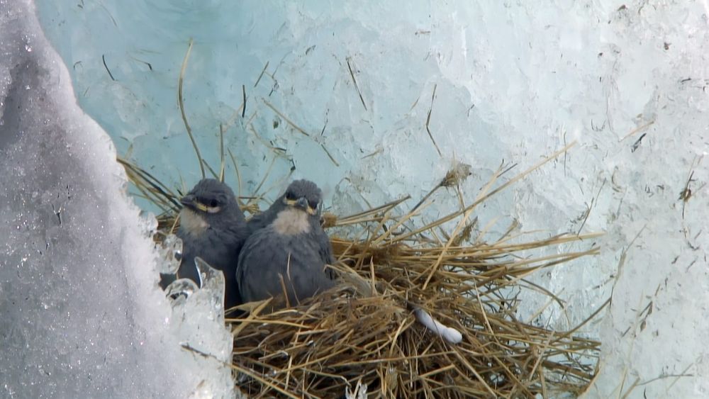 BBC capturou a primeira filmagem de diuca fazendo ninho em um penhasco de gelo