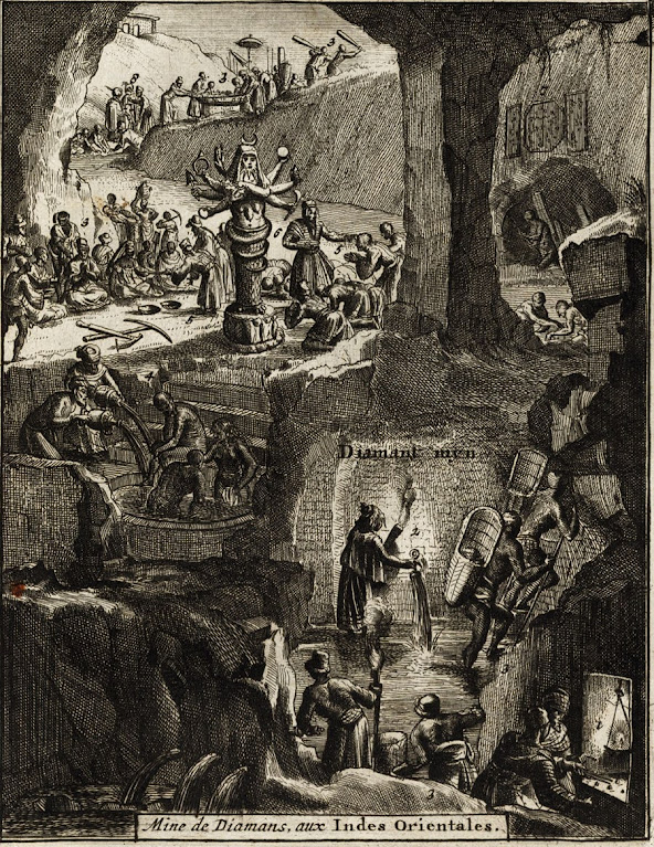 Os diamantes da Golconda eram conhecidos pelos europeus desde a época de Marco Polo. O comerciante francês de gemas, Jean-Baptiste Tavernier, foi um dos poucos estrangeiros que viajou extensivamente pelo país, visitando minas de gemas e seus reis. Em um relato de suas viagens, ele explicou como os depósitos de diamantes da Índia eram extensos, com pedras encontradas nos dias atuais Tamil Nadu, Maharashtra, Bengala, Bundelkhand, para citar alguns.