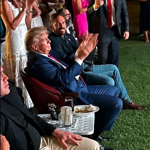👇 Aqui está a exibição, com o presidente Trump na primeira fila ao centro, Jim Caviecell à esquerda e Tim Ballard à direita.