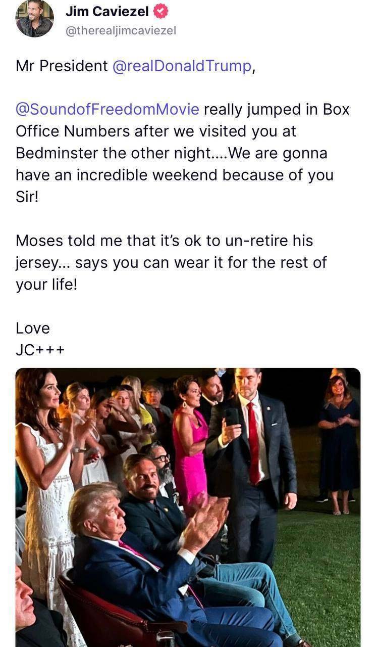 Presidente Trump, após nossa recente visita a Bedminister, a bilheteria do filme The Sound of Freedom aumentou significativamente. .